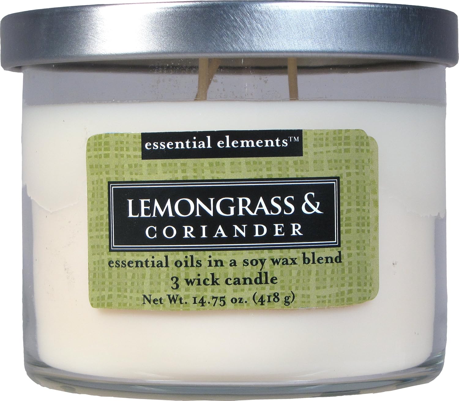 Handmade, 3 Wick Candle with Natural, Vegan Soy Wax (Lemongrass & Coriander) with Essential Oils – Made in the USA.
